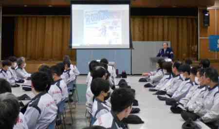 令和8年4月6日(月)、社内の朝礼において高梁警察署の方をお招きし、4月より始まった自転車の違反に対する青切符制度の導入及び、自転車の安全な利用に関する講和を行っていただきました。